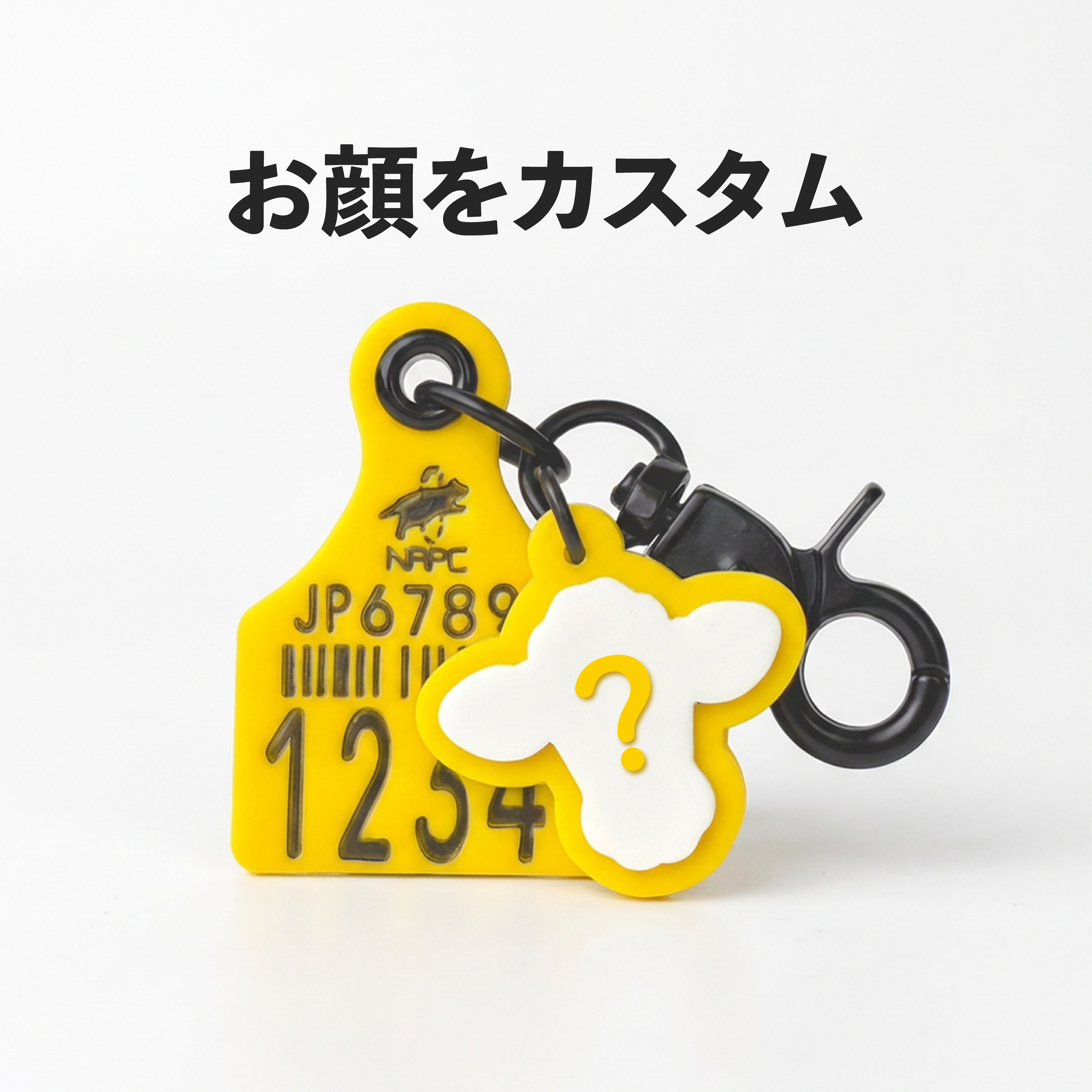 番号選べる 牛さんの耳標キーホルダー|ホルスタイン