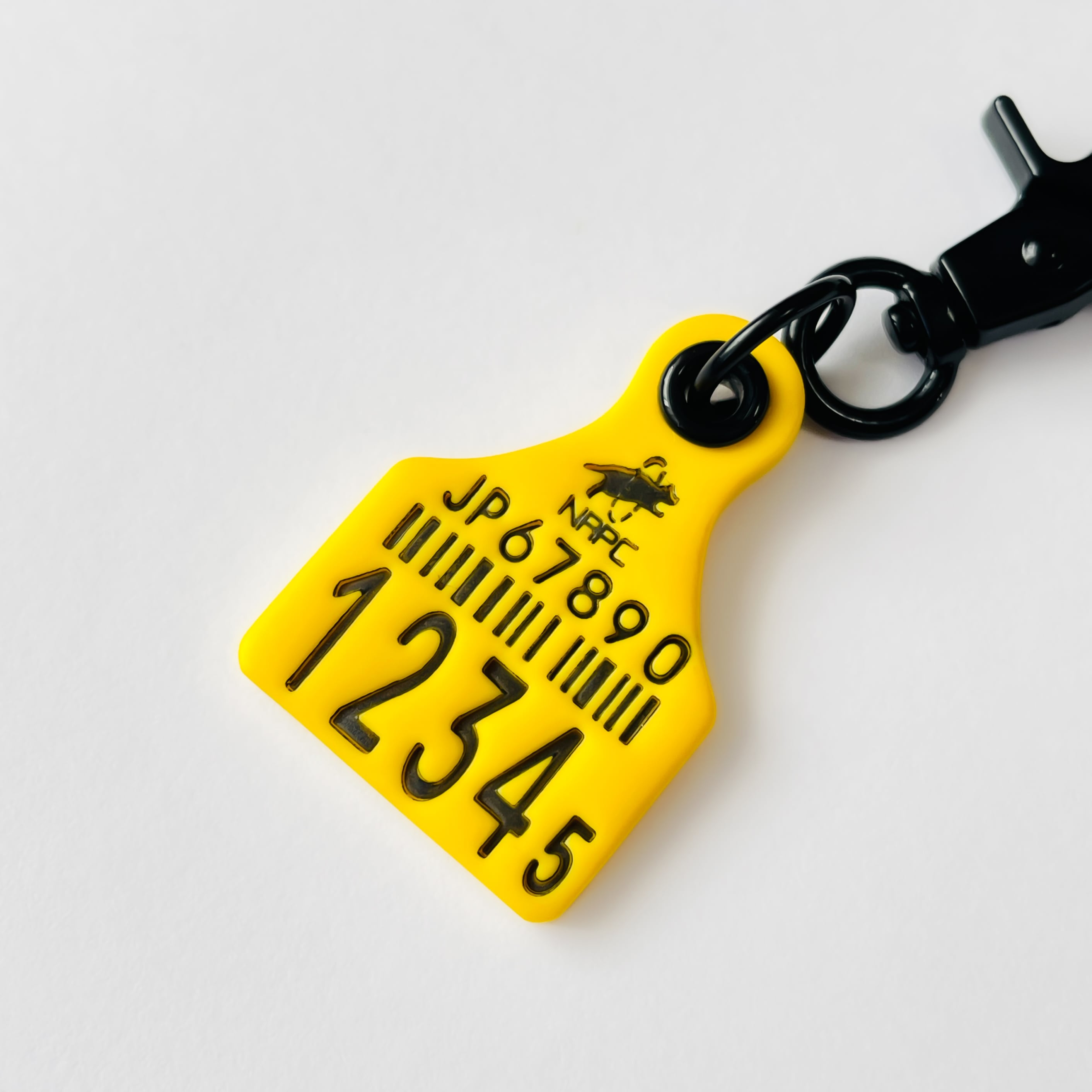 牛さんの耳に付いている耳標がそのままキーホルダーになりました!