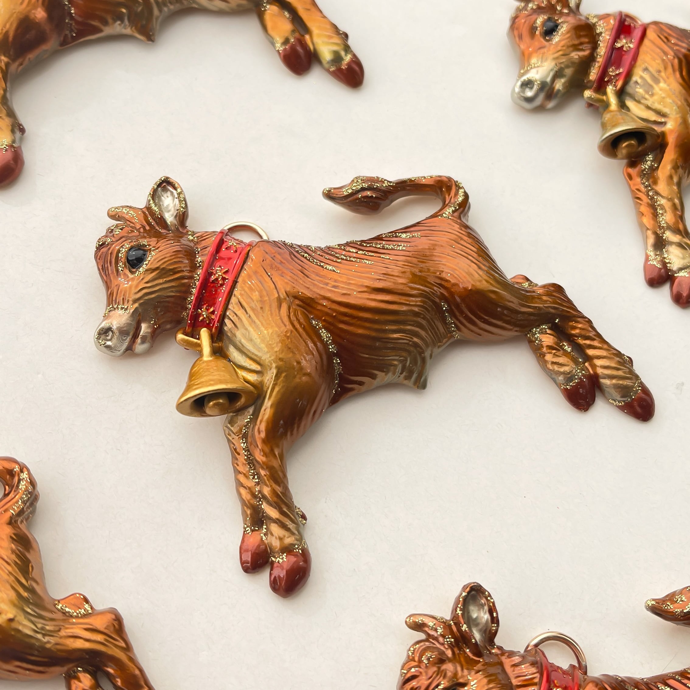 聖夜に灯る火のような、あたたかな輝きをまとった子牛のオーナメントです。